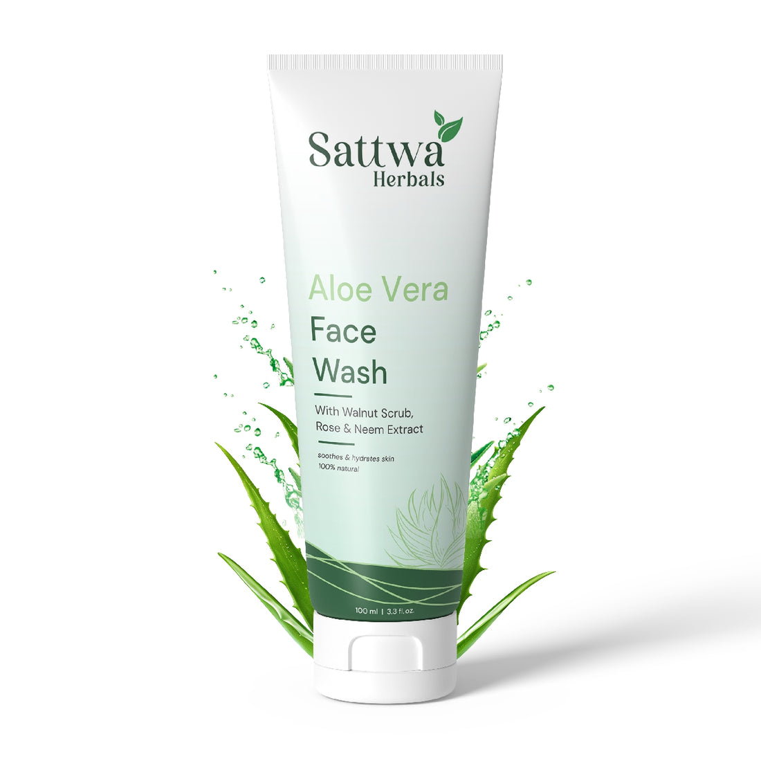 Sattwa Herbals Aloe Vera Face Wash Scrub - Hydrating & Gentle Exfoliation for Soft Skin