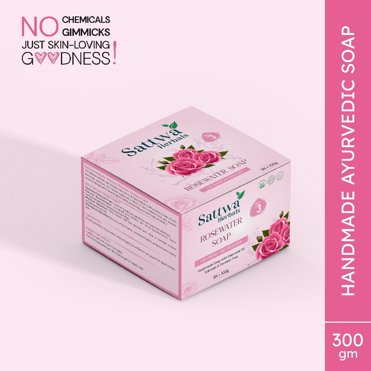 Sattwa Herbals Rose Water Soap Bar - Natural Moisturizing Bath Soap
