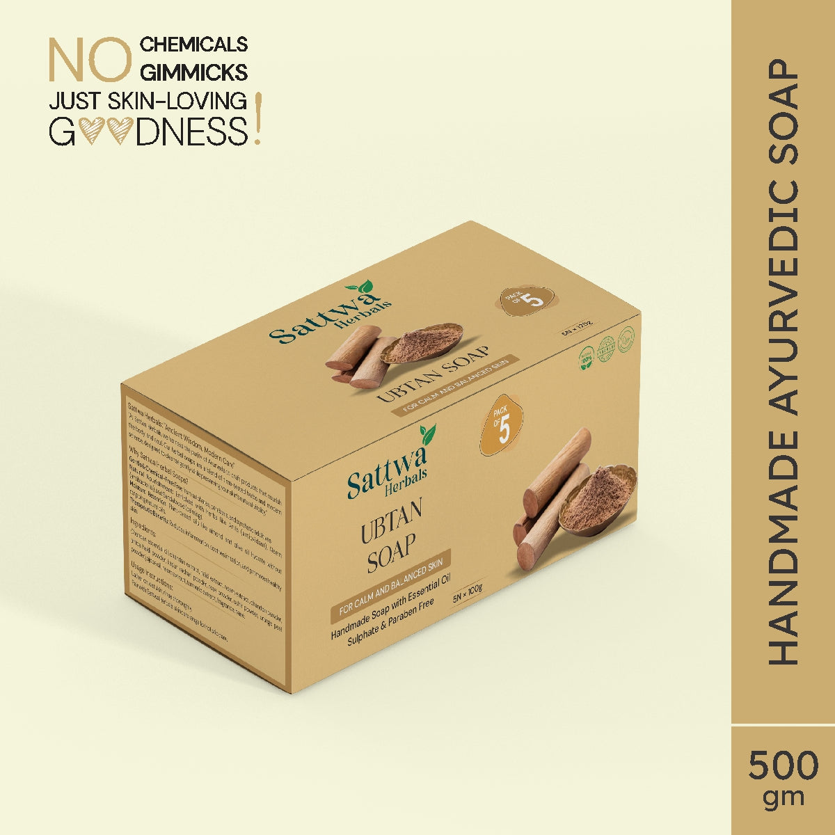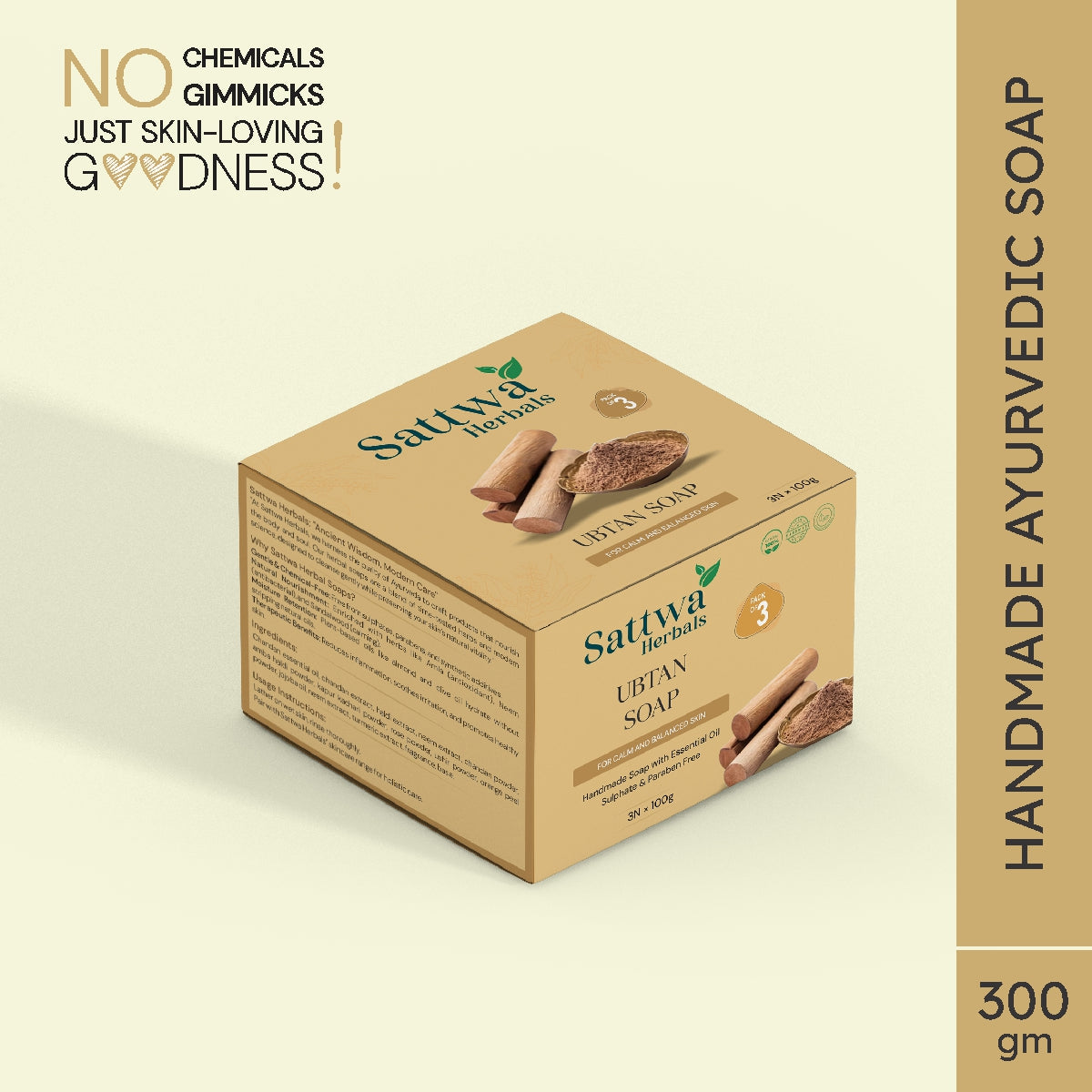 Sattwa Herbals Traditional Ubtan Soap - Natural Skin Brightening & Tan Removal Bar - Turmeric & Saffron